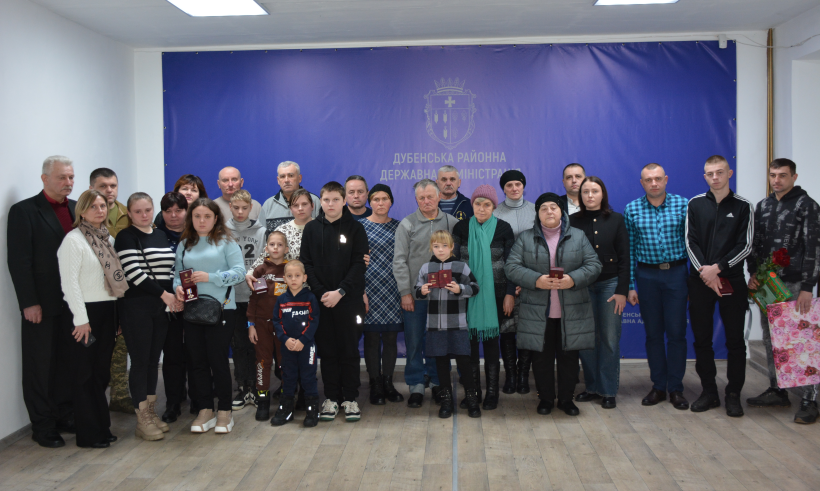 Нагороди їхнім рідним сьогодні вручили перший заступник голови Дубенської райдержадміністрації Мар’яна Мудрик спільно із т. в. о. начальника Дубенського РТЦК СП Іваном Карповичем. До вручення нагород також долучилися голова Повчанської сільської ради Інна Іванюк, голова Семидубської сільської ради Микола Ковальчук, голова Бокіймівської сільської ради Сергій Павлюк, керуючий справами, секретар виконкому Дубенської міської ради Микола Шубнік, заступник голови Млинівської селищної ради Валерій Феха та староста Добрятинського старостинського округу Микола Рудюк.