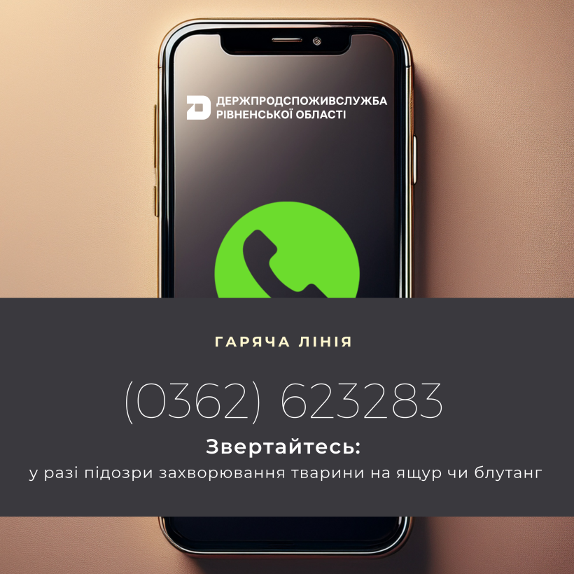 Гаряча лінія (0362) 62-32-83 діятиме при Головному управлінні Держпродспоживслужби у Рівненській області.